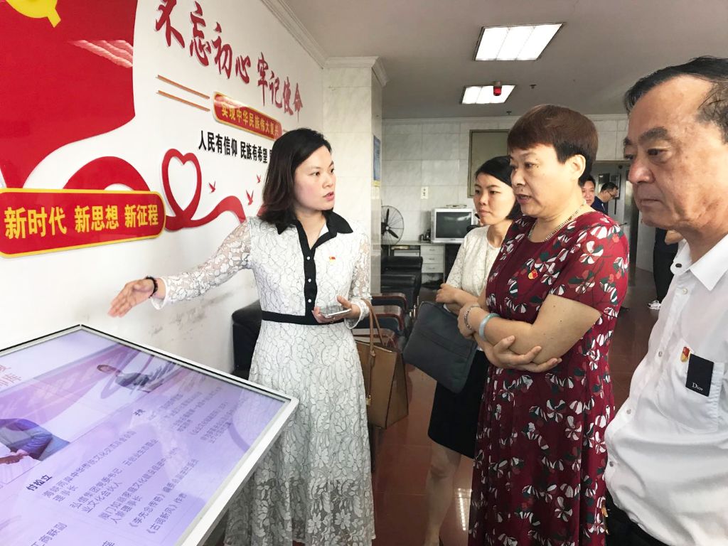 在弘信集团党委的牵头组织下,银龙大厦联合党委在楼宇党建方面进行积极探索,利用科技手段,在楼宇公共空间里展开形式多样的宣传。湖里街道党工委副书记林虹向曾副部长一一做了介绍,曾副部长频频点头,对银龙大厦联合党委的工作给予肯定和鼓励。